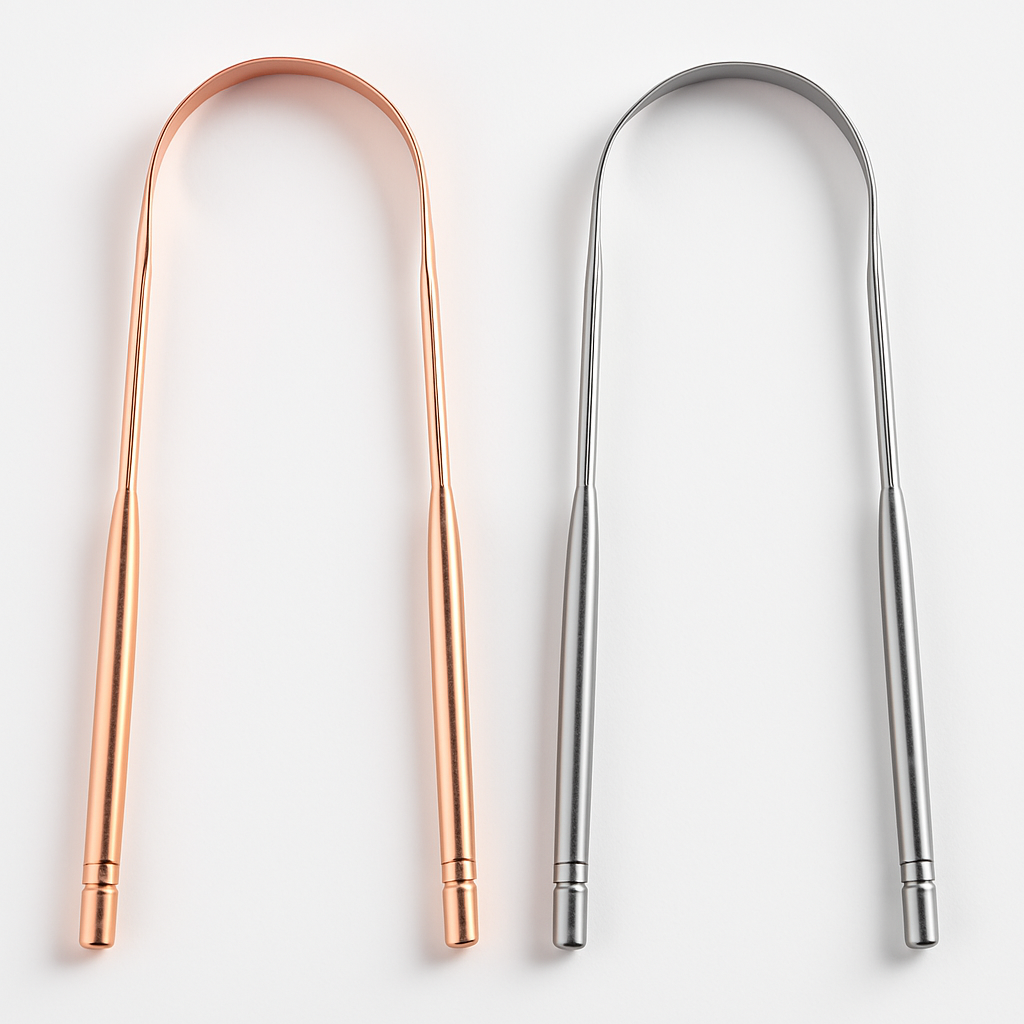 Tungaskafa fjarlægir bakteríur og húð af tungu sem kemur í veg fyrir andremmu og súrt bragð í munni