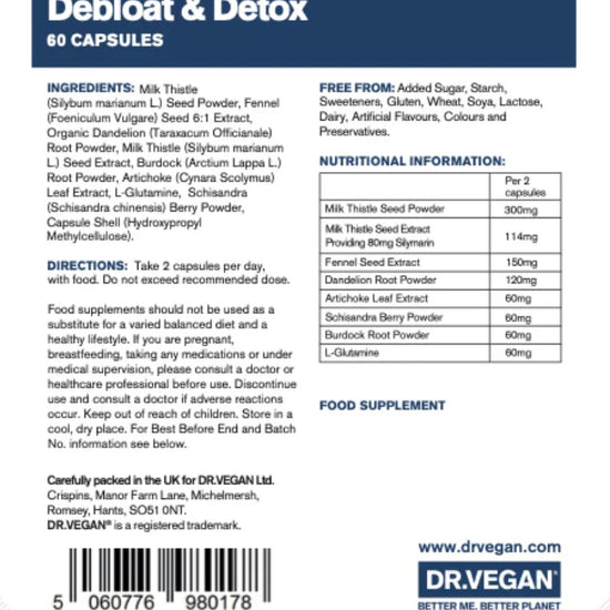 Debloat & Detox® er háþróuð formúla sem inniheldur jurtablöndu og amínósýrur sem er ætlað að létta meltingartengda uppþembu og vinna á náttúrulegum eiturefnum í lifur og líkama. Blandan inniheldur m.a. mjólkurþistil, þistilhjörtu, fíflarót og L-glútamín, sem losar þig við „morguninn eftir“ tilfinninguna en a.m.k. 85% notenda finnur fyrir létti af uppþembu í meltingarvegi.