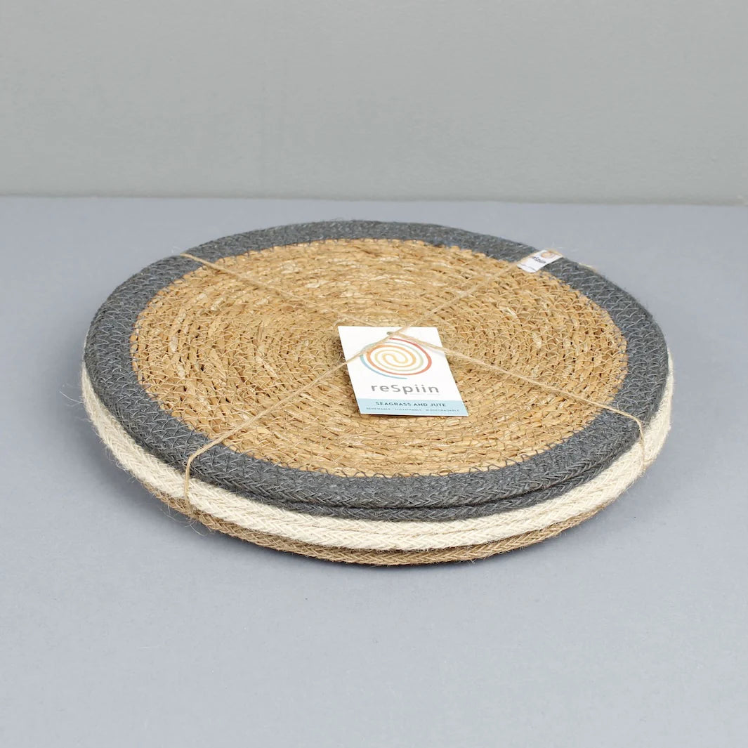 Diskamotta úr sjávargrasi með jútukanti – handgerð og náttúruleg