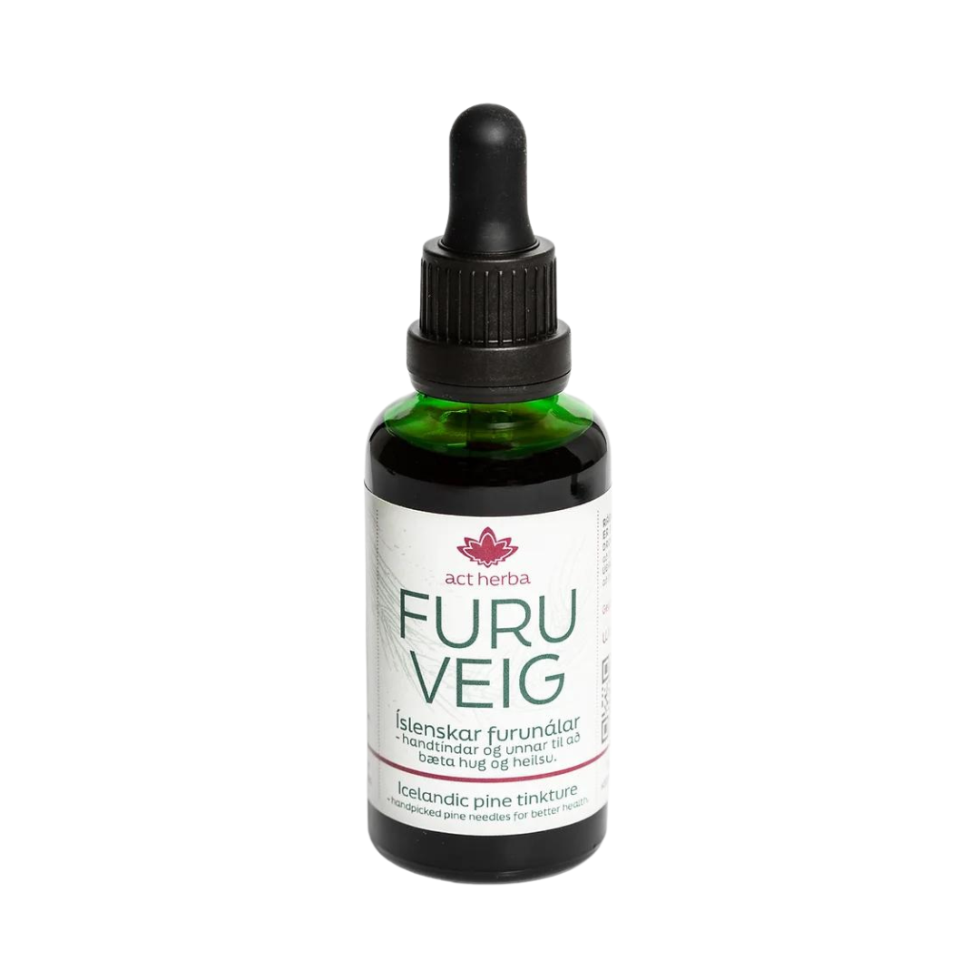 Furuveigin er unnin úr ungum furunálum frá ákveðnu yrki, handtíndum úr íslenskri náttúru. Hún virkar eins og fjölvítamín sem bætir bæði hug og heilsu.