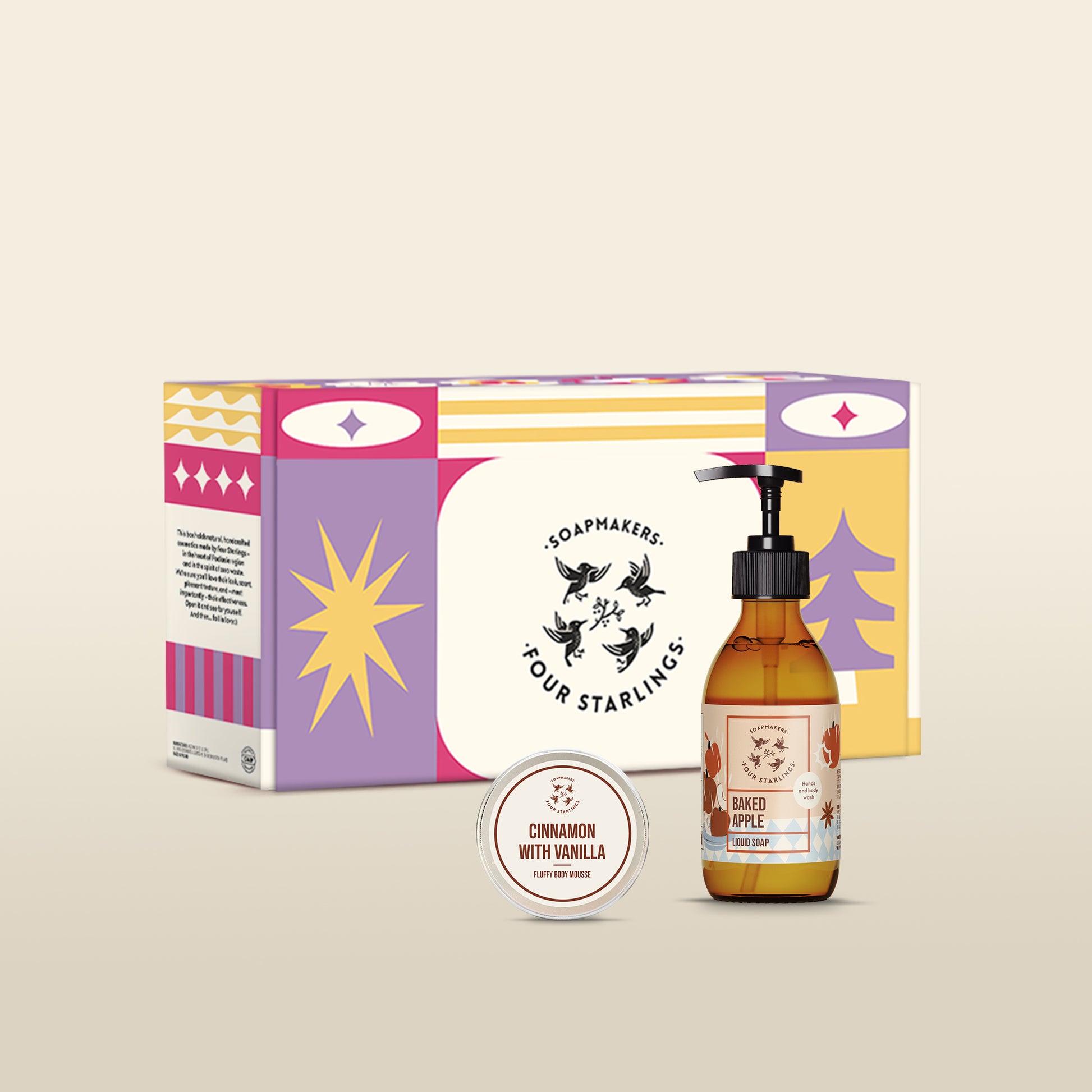 Gjafasettin frá Four Starlings eru falleg blanda af náttúru, vellíðan og handverki. Þau eru unnin úr hreinum og náttúrulegum hráefnum og henta öllum sem kunna að meta vistvænar og mildar vörur í daglegri umhirðu.