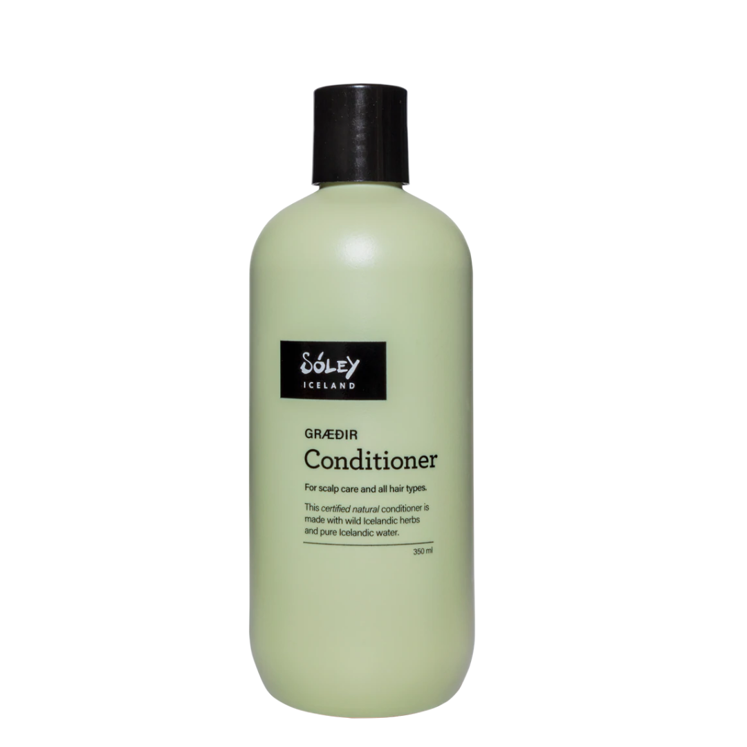 GRÆÐIR hárnæring inniheldur öfluga blöndu af handtíndum, villtum íslenskum lækningajurtum samkvæmt gamalli uppskrift sem varðveist hefur í fjölskyldu Sóleyjar í margar kynslóðir.