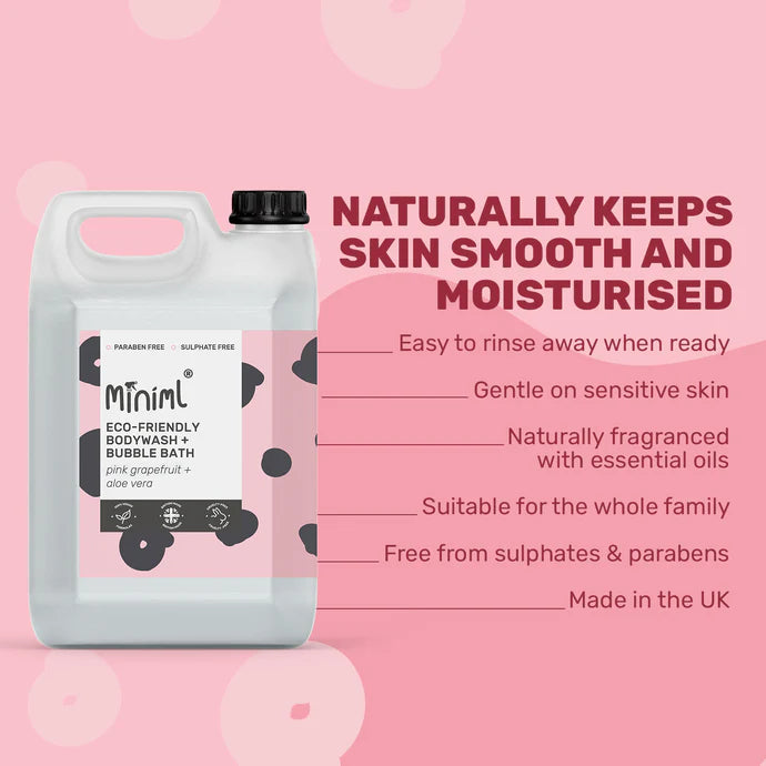 Sturtusápa með grapefruit og aloe vera frá Miniml er frábær kostur fyrir þá sem vilja sturtusápu sem er laus við súlfat. Virkar einnig sem freyðibað!