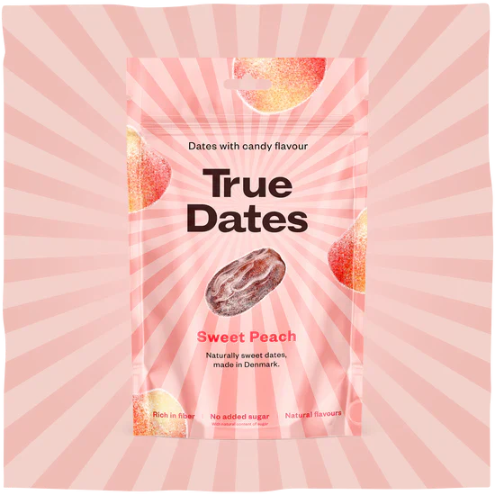 Sweet Peach True Date sameinar sætu döðlunnar og ljúft, safaríkt ferskjubragð. Létt, sæt og ilmandi blanda sem gerir hvern bita aðeins betri.